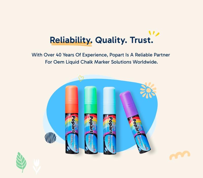 我們專注於生產高品質的 POPART 液態粉筆筆,提供超過 52 種鮮豔色彩,採用無毒、水性墨水。憑藉自家墨水與塑膠零件生產能力,我們能提供量身訂製的解決方案,以滿足客戶的獨特需求。我們的產品深受歐洲、美國與南美洲市場歡迎,月銷量超過 50,000 支。